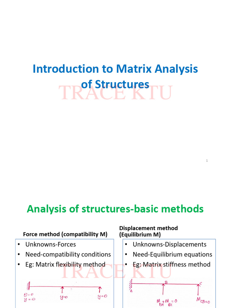 • Eg: Matrix flexibility method • Eg: Matrix stiffness method