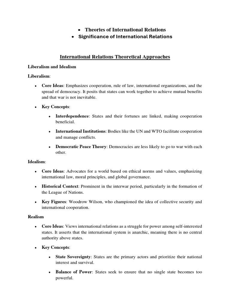 • Institutionalism: International organizations and laws help mitigate anarchy