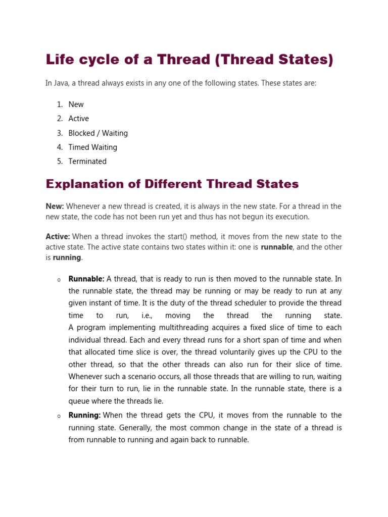 o Running: When the thread gets the CPU, it moves from the runnable to the