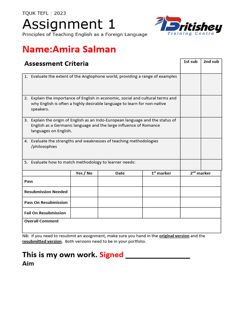 NB: If you need to resubmit an assignment, make sure you hand in the original version and the
