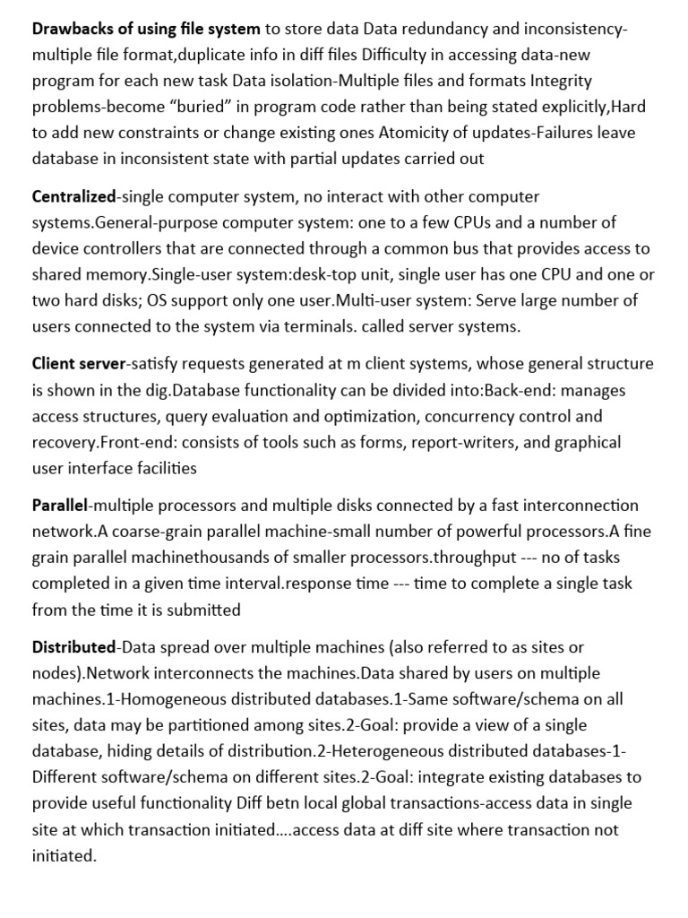 Drawbacks of using file system to store data Data redundancy and inconsistency-
