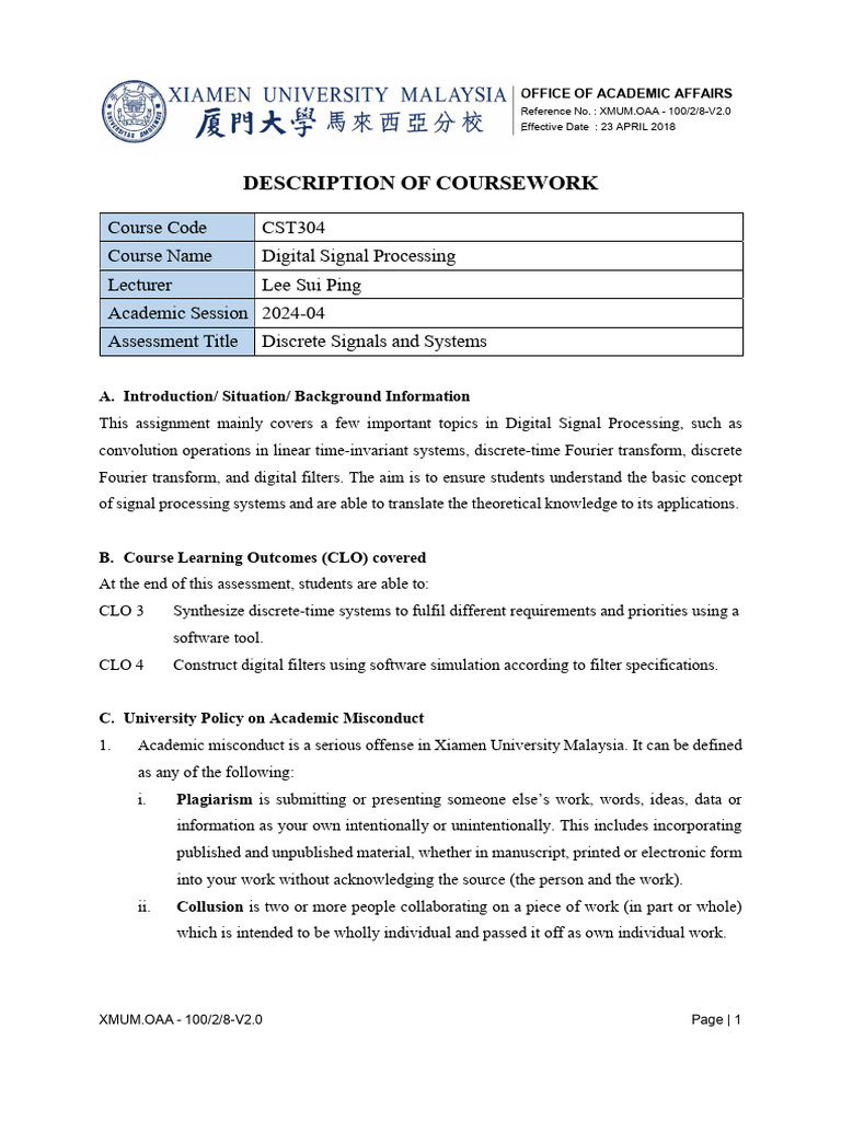 Assessment Title Discrete Signals and Systems