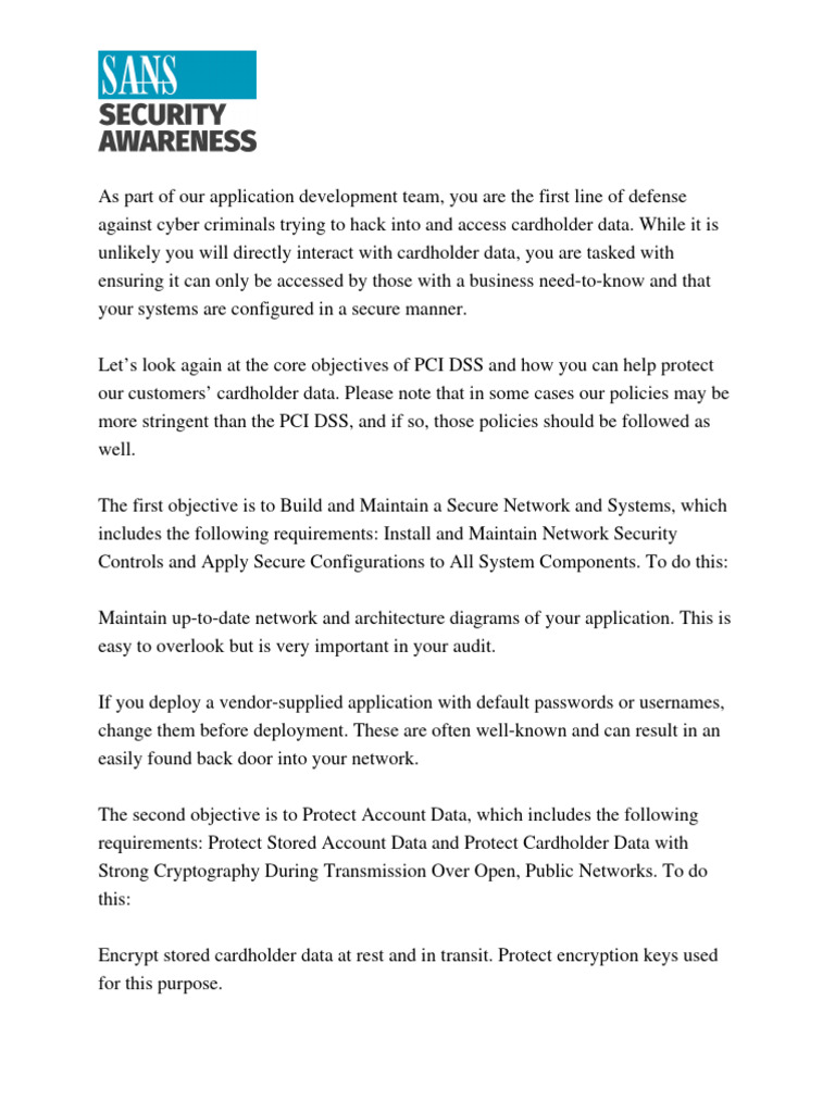 developer, you may be heavily involved with PCI DSS audits. To facilitate these