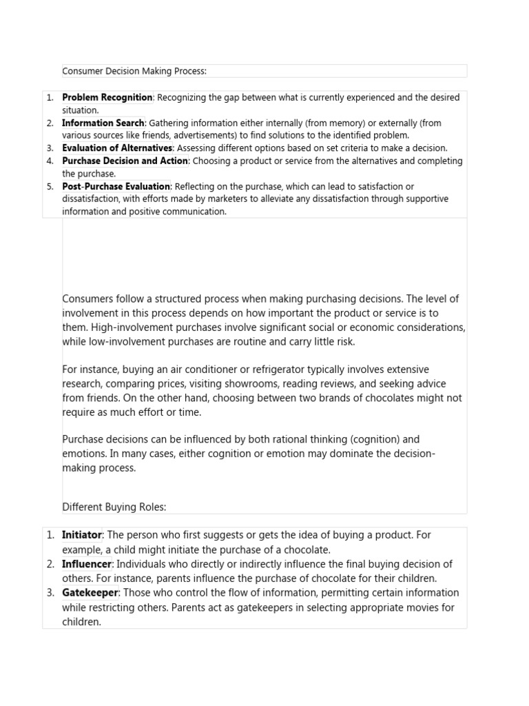 Consumers follow a structured process when making purchasing decisions. The level of