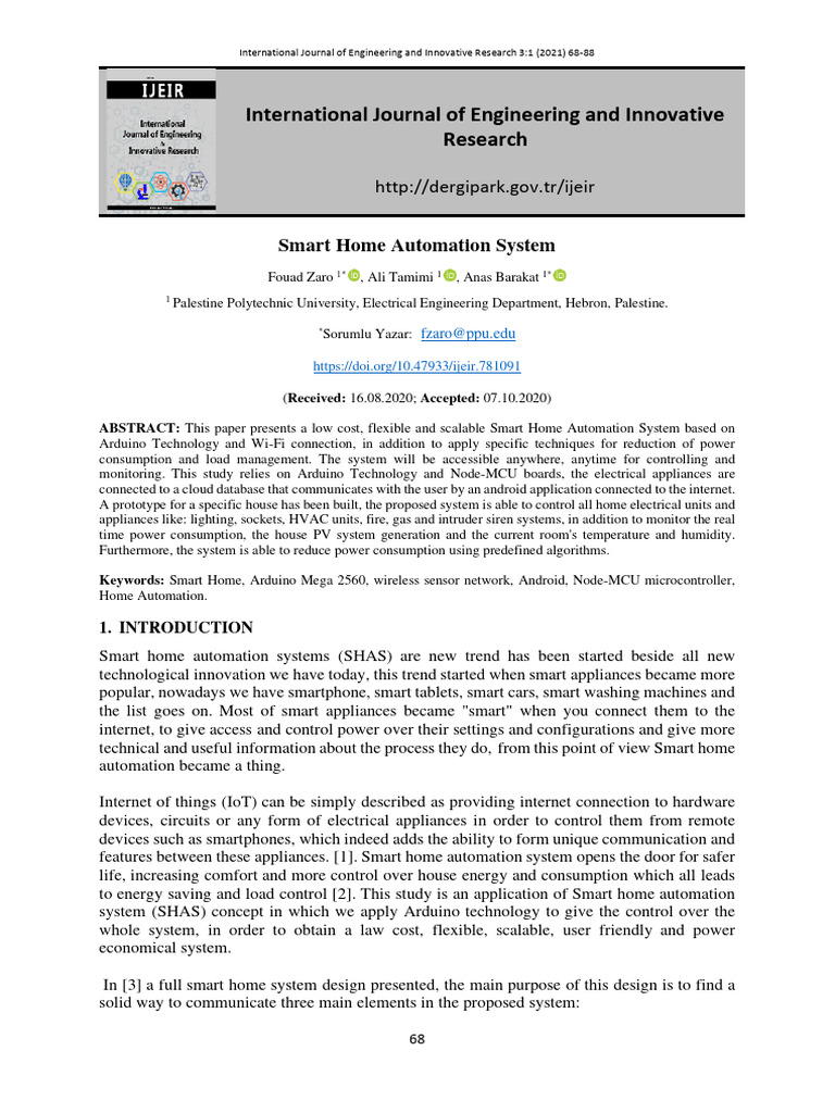 Keywords: Smart Home, Arduino Mega 2560, wireless sensor network, Android, Node-MCU microcontroller,