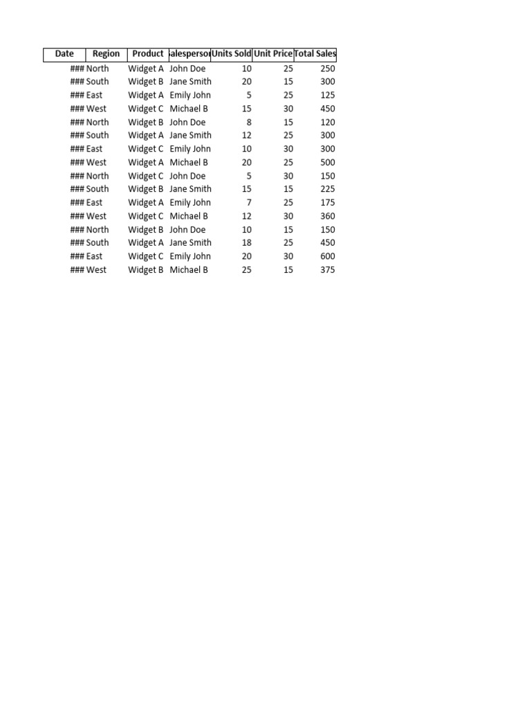 Date Region Product SalespersonUnits Sold Unit Price Total Sales