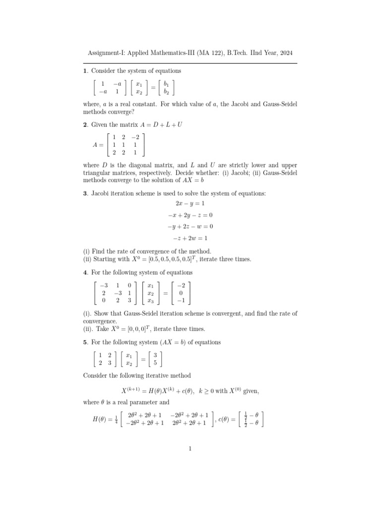 Assignment-I: Applied Mathematics-III (MA 122), B.Tech.