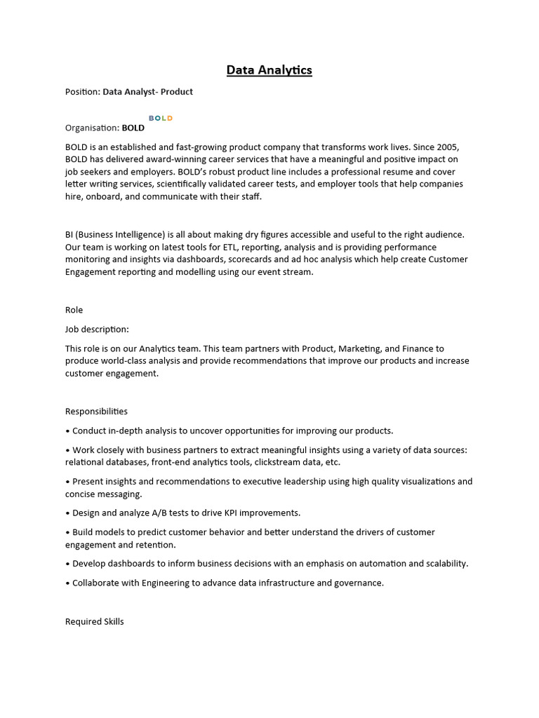 job seekers and employers. BOLD’s robust product line includes a professional resume and cover