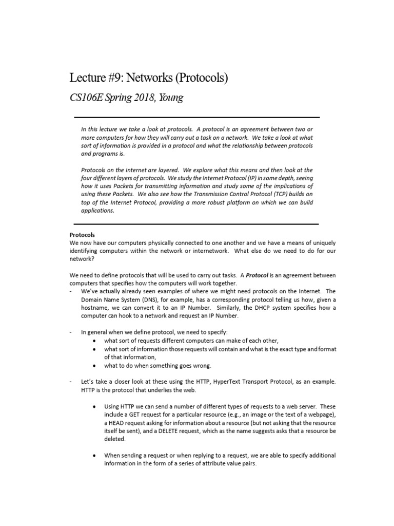 In this lecture we take a look at protocols. A protocol is an agreement between two or