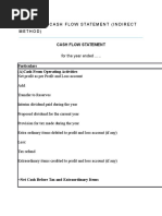 FORMAT OF CASH FLOW STATEMENT (INDIRECT METHOD) for the year ended ...