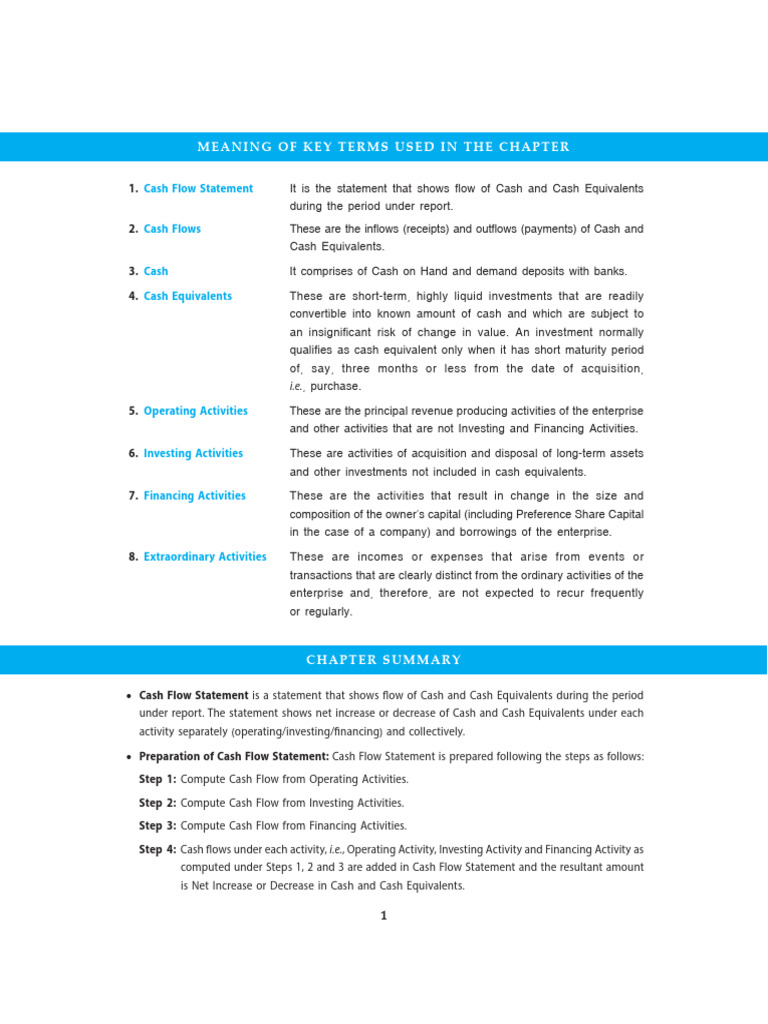 1. Cash Flow Statement It is the statement that shows flow of Cash and Cash Equivalents