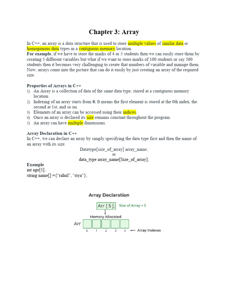 1) An Array is a collection of data of the same data type, stored at a contiguous memory