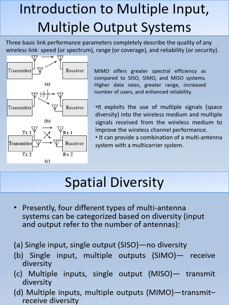 compared to SISO, SIMO, and MISO systems.