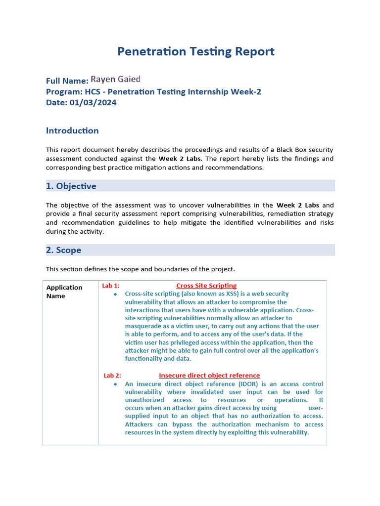 The objective of the assessment was to uncover vulnerabilities in the Week 2 Labs and
