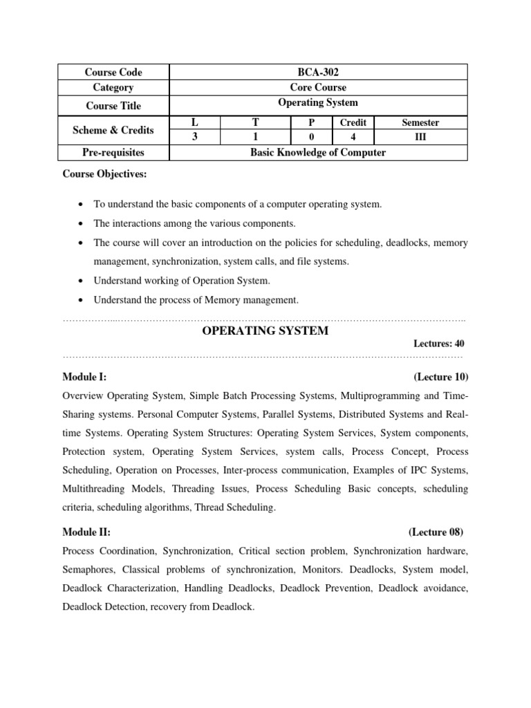 • The course will cover an introduction on the policies for scheduling, deadlocks, memory