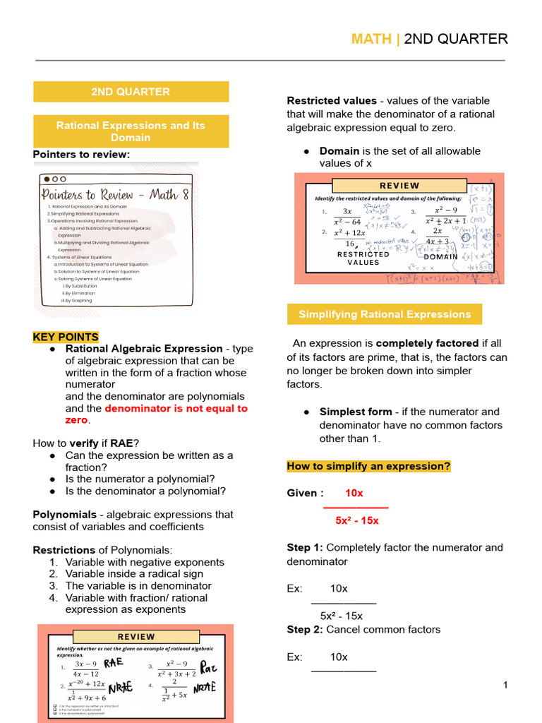 and the denominator is not equal to ● Simplest form - if the numerator and
