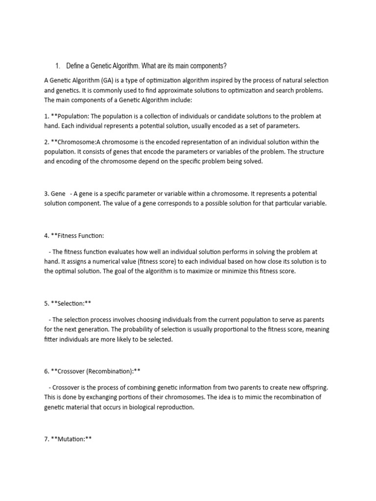1. **Population: The population is a collection of individuals or candidate solutions to the problem at