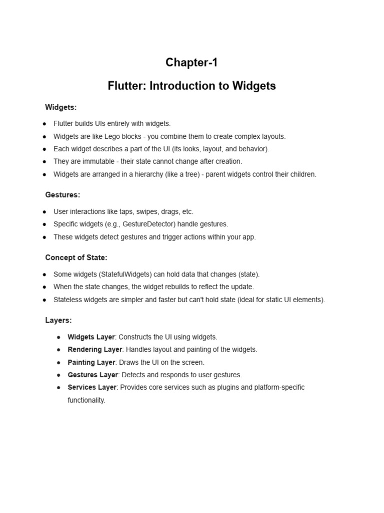 1. Describe the different layers involved in rendering a UI in Flutter. Briefly explain the function of each
