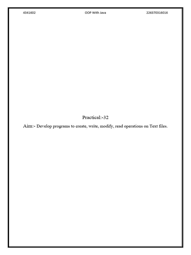 Aim:- Develop programs to create, write, modify, read operations on Text files.