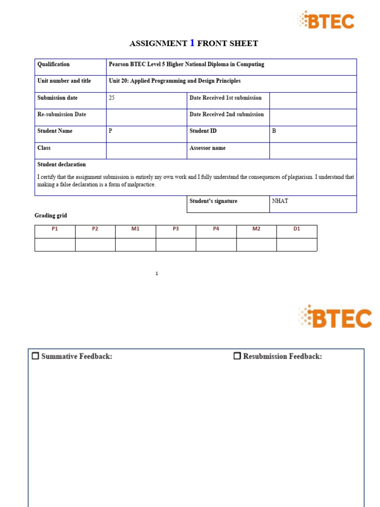 Unit number and title Unit 20: Applied Programming and Design Principles