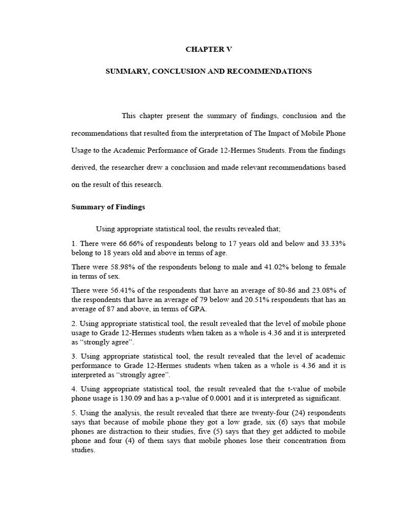 recommendations that resulted from the interpretation of The Impact of Mobile Phone