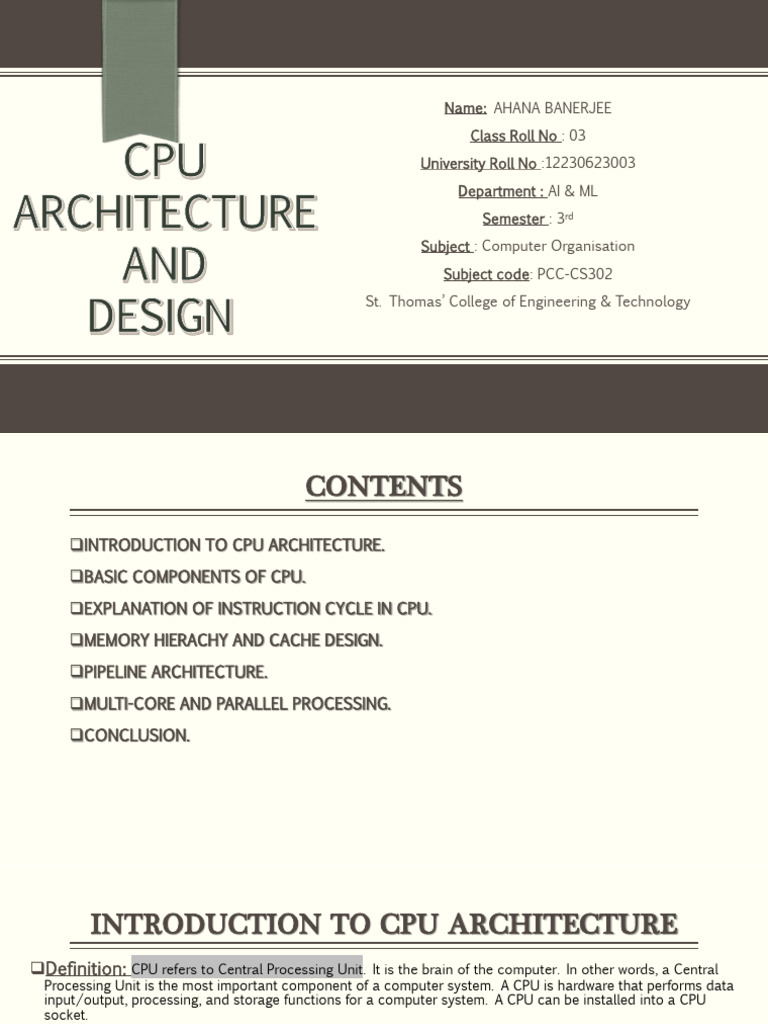 ❑INTRODUCTION TO CPU ARCHITECTURE.