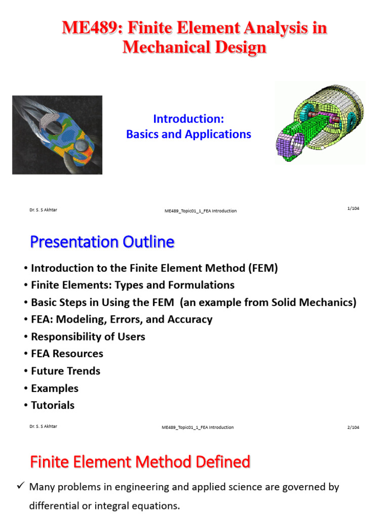 Dr. S. S Akhtar ME489_Topic01_1_FEA Introduction 11/104