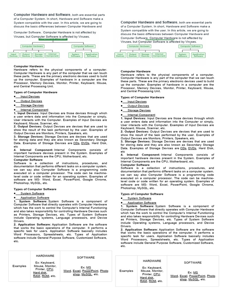System compatible with the user. In this article, we are going to Computer Hardware and Software , both are essential parts