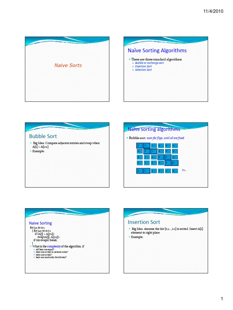 Bubble Sort Bubble sort: scan for flips, until all are fixed