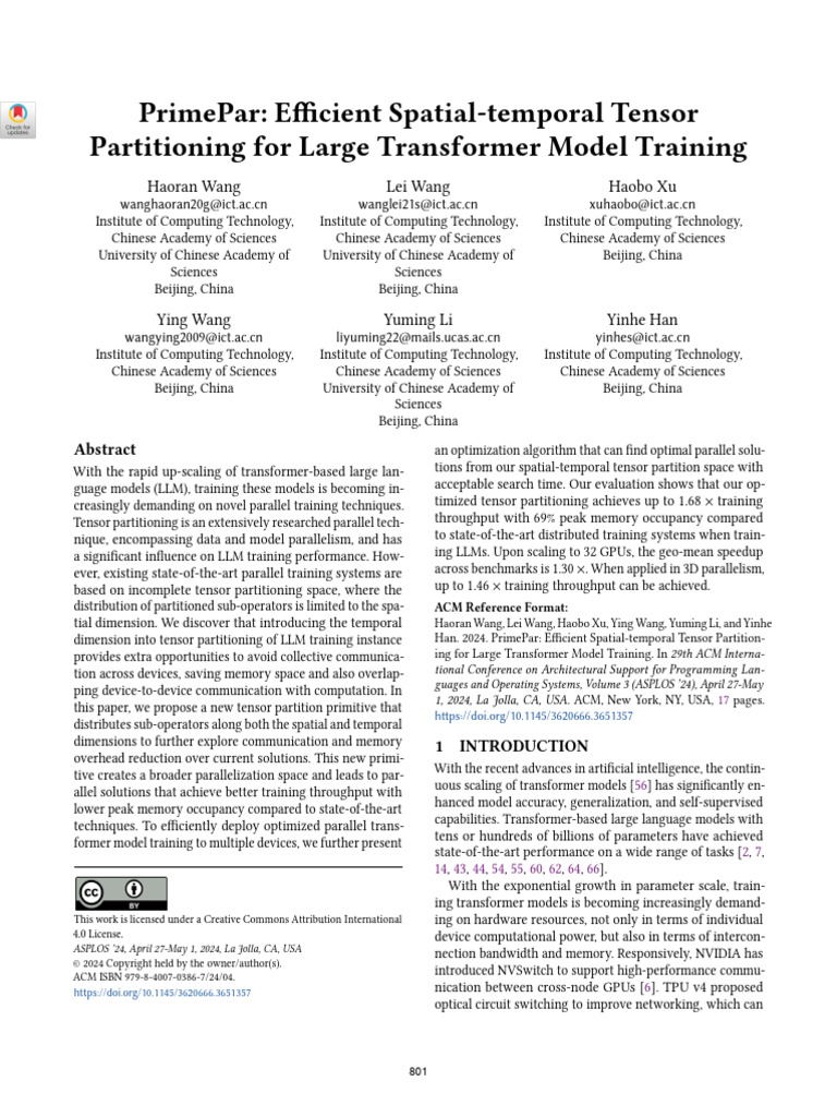 PrimePar: Efficient Spatial-temporal Tensor Partitioning for Large Transformer Model Training ASPLOS ’24, April 27-May 1, 2024, La Jolla, CA, USA
