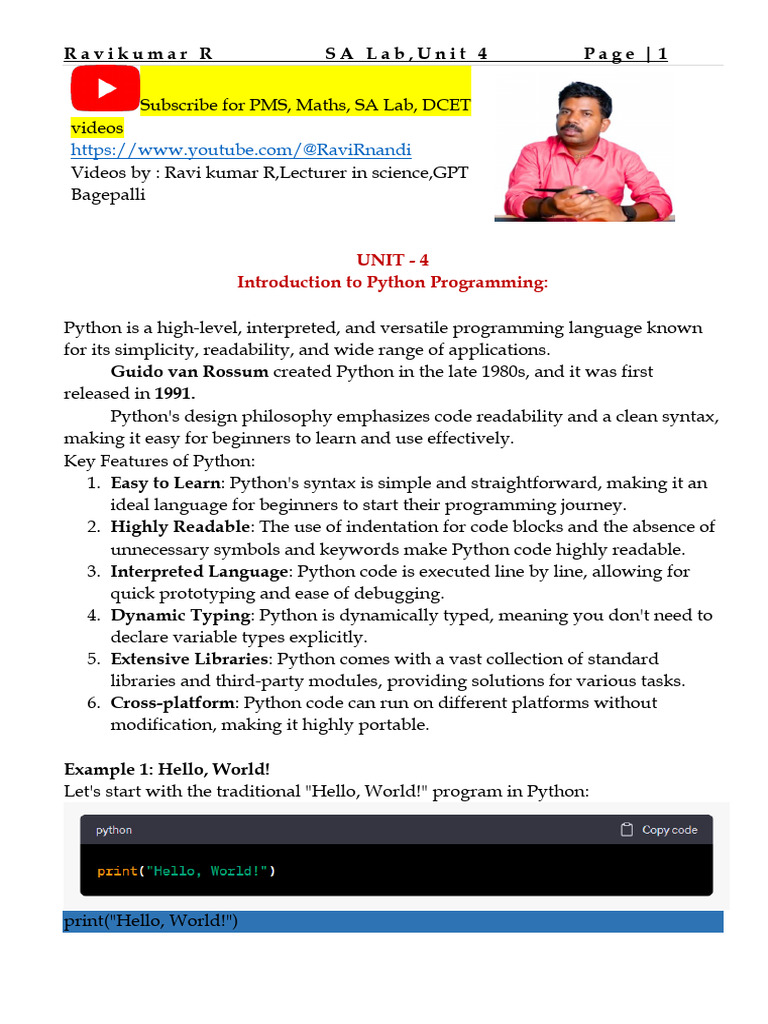 Ravikumar R SA Lab,Unit 4 P a g e | 17