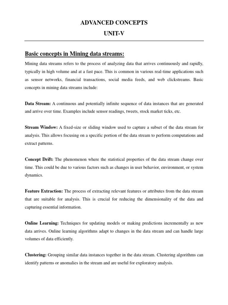concepts in mining data streams include:
