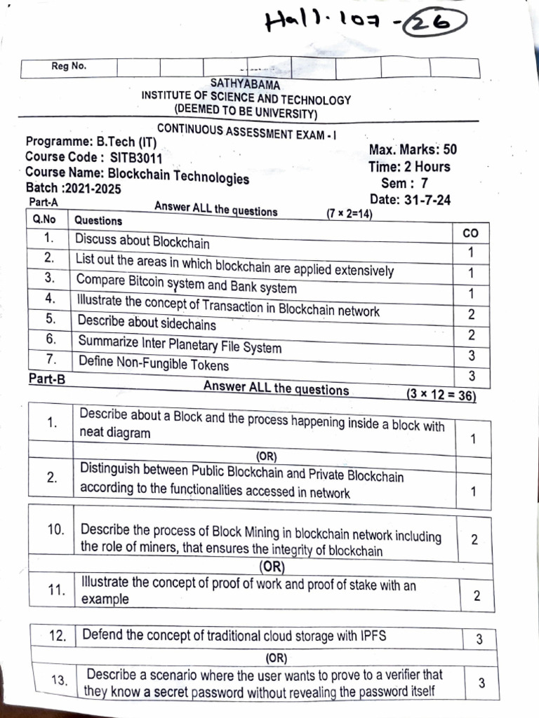 · Course Name: Blockchain Tech Time: 2 Hours