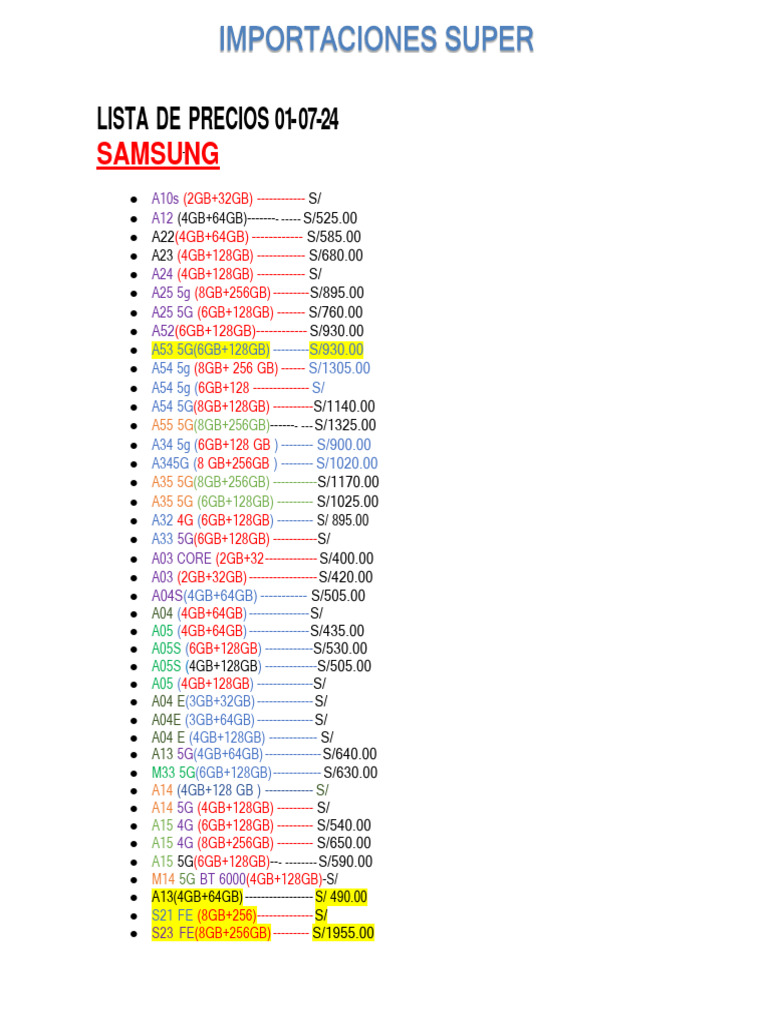 ● A54 5g (8GB+ 256 GB) ------ S/1305.00