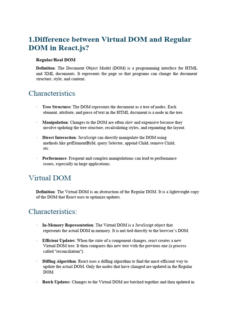 Definition: The Virtual DOM is an abstraction of the Regular DOM. It is a lightweight copy