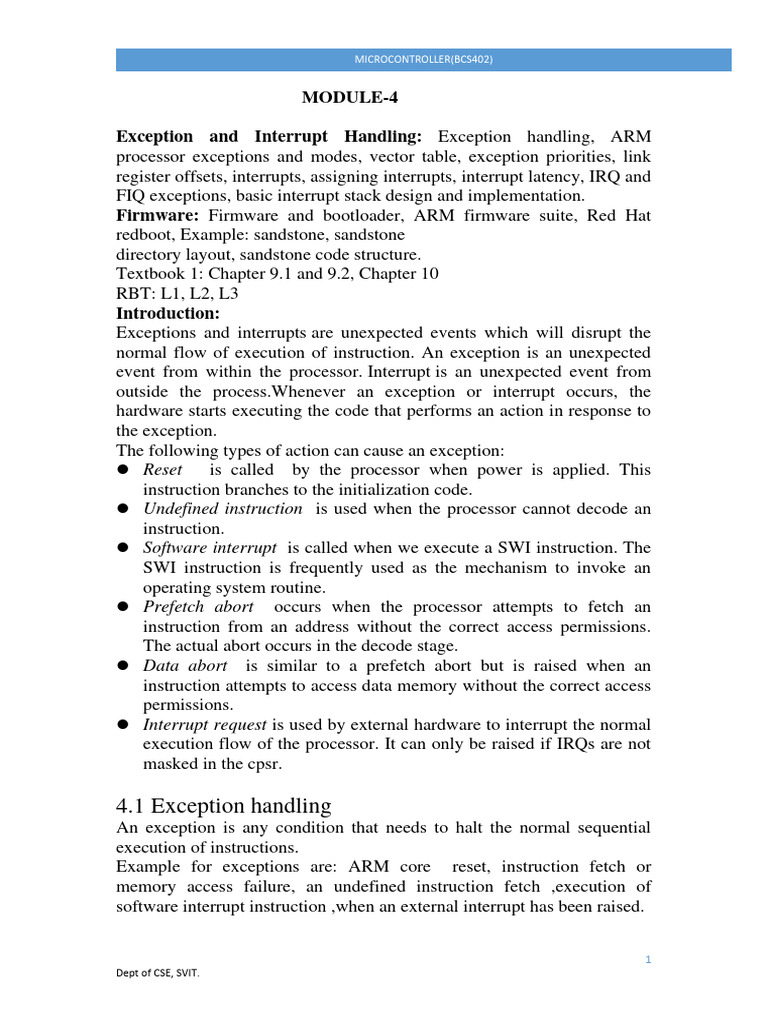 Whenever an exception occurs, the core enter a specific mode. The ARM