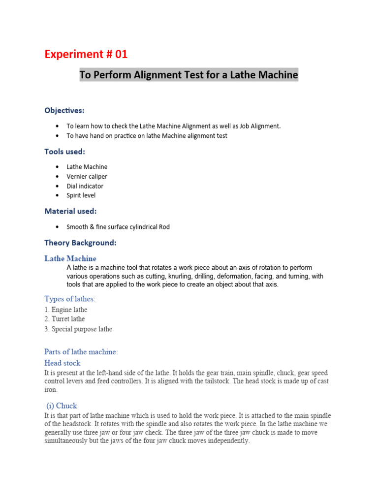To Perform Alignment Test for a Lathe Machine