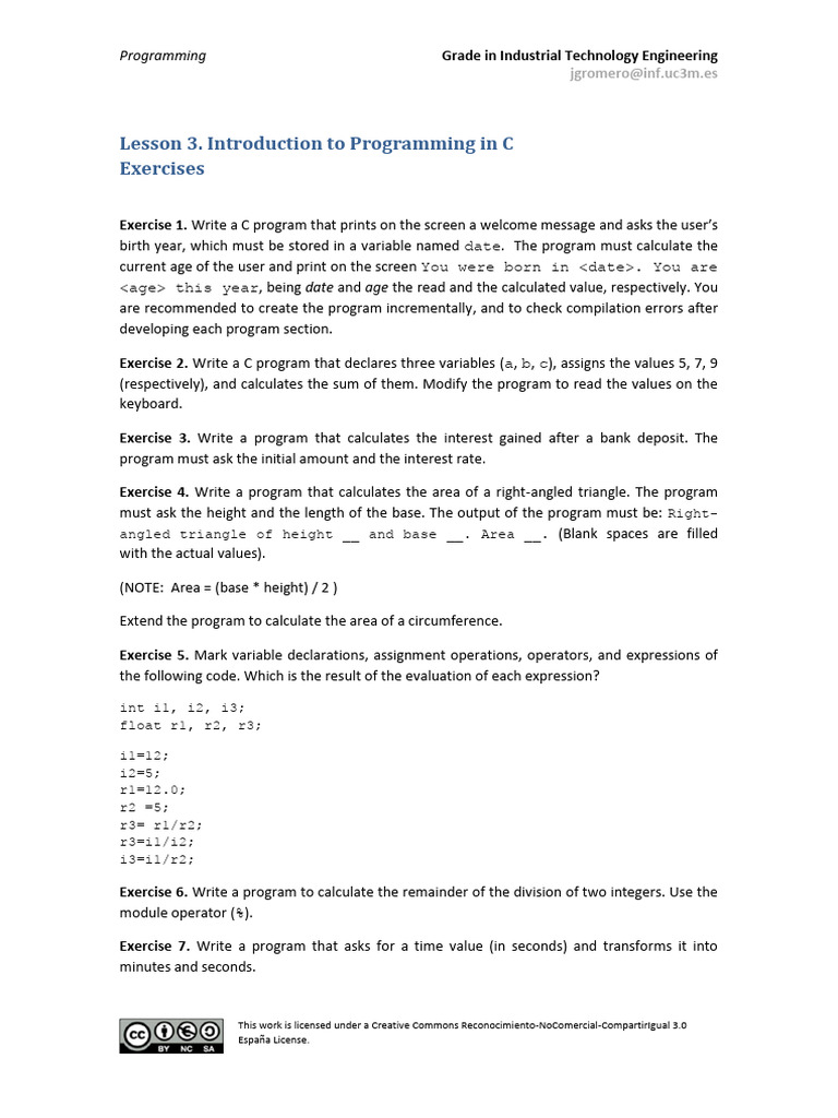 Exercise 1. Write a C program that prints on the screen a welcome message and asks the user’s