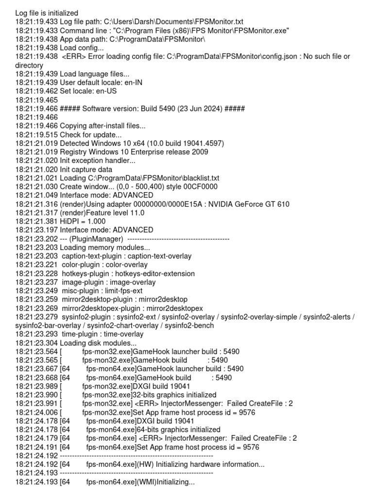 18:21:19.438 <ERR> Error loading config file: C:\ProgramData\FPSMonitor\config.json : No such file or