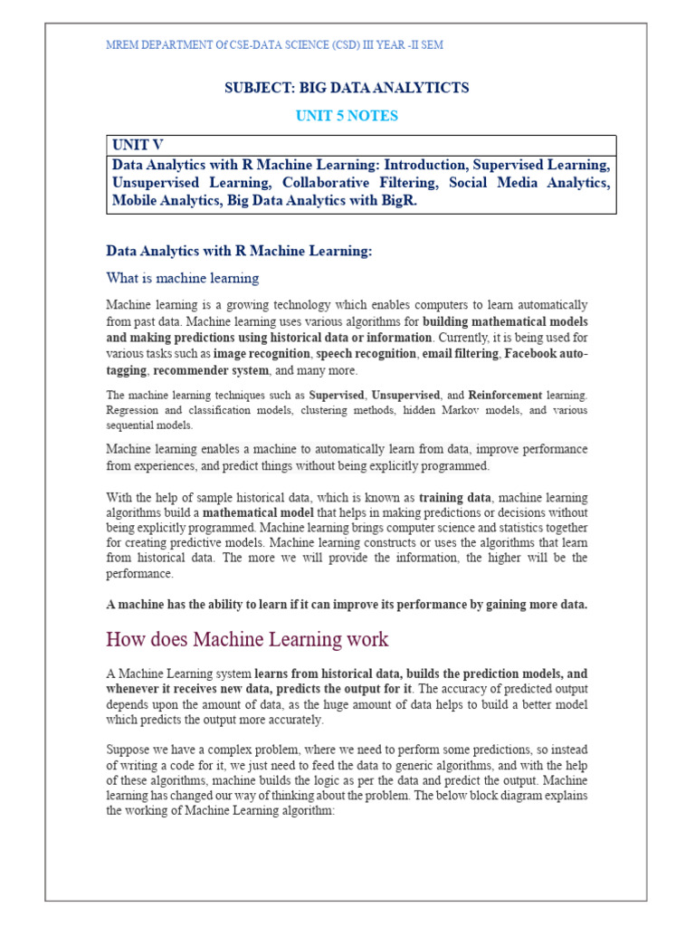 MREM DEPARTMENT Of CSE-DATA SCIENCE (CSD) III YEAR -II SEM