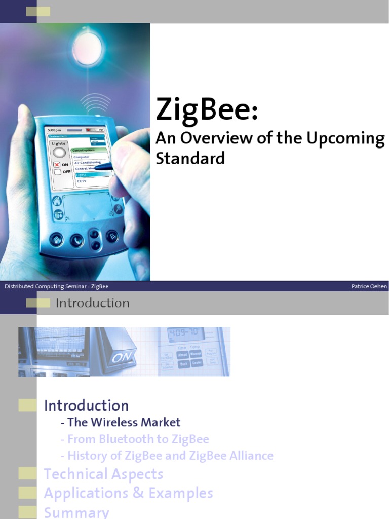 Pictures by: Integration Associates Distributed Computing Seminar - ZigBee Patrice Oehen