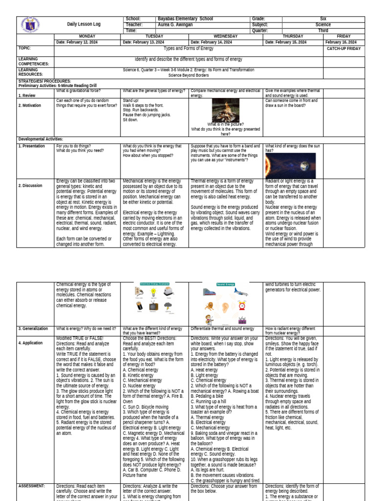 TOPIC: Types and Forms of Energy CATCH-UP FRIDAY
