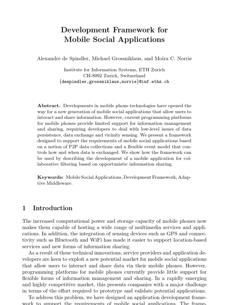 Development Framework For Mobile Social Applications: (Despindler, Grossniklaus, Norrie) @inf - Ethz.ch