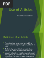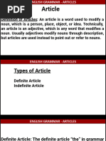 (one), and the. Articles specify (or determine) which noun the speaker is referring to.