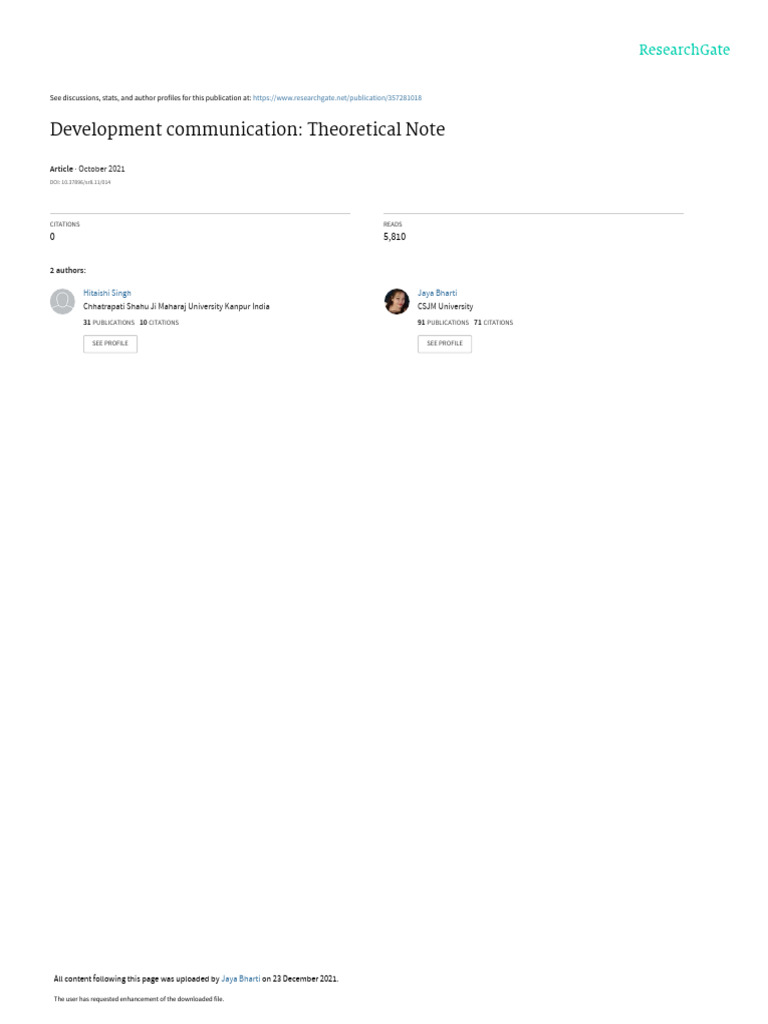 16. Phukan, N., (November, 2009), “Development Communication: The Emerging Participatory