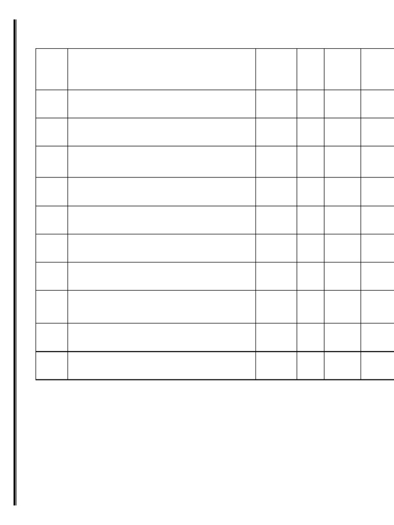 The items column 1 onwards are: