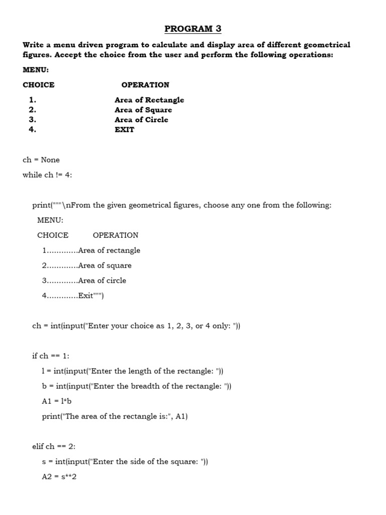 ch = int(input("Enter your choice as 1, 2, 3, or 4 only: "))