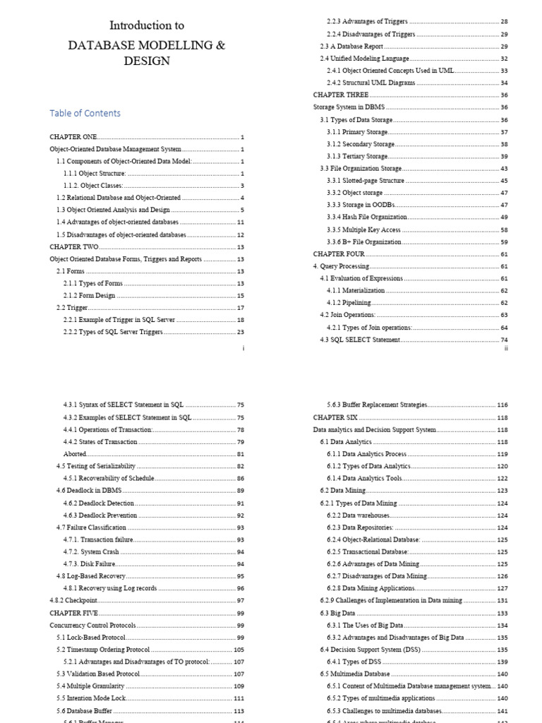 DATABASE MODELLING & 2.3 A Database Report ................................................................ 29