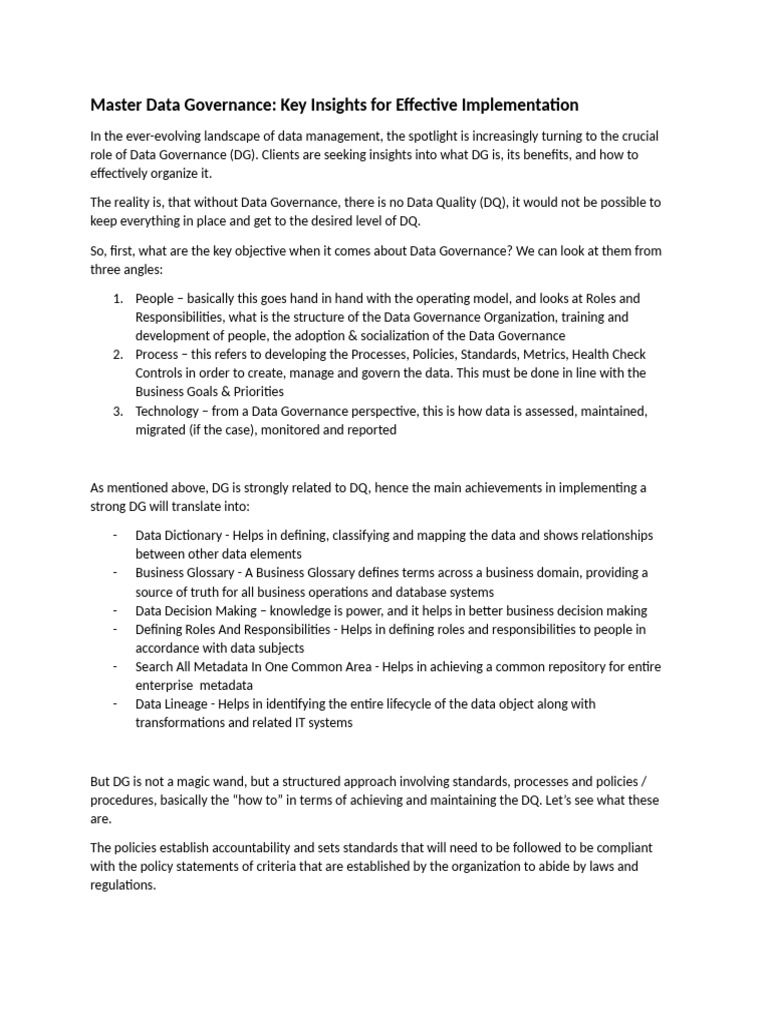 Master Data Governance: Key Insights for Effective Implementation