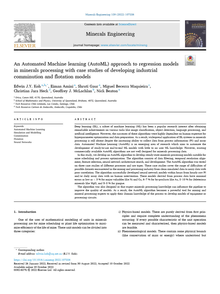 jad, 2013), comminution (Baek and Choi, 2019), hydrocyclone perfor vertises developing AutoML from process data but there is no published
